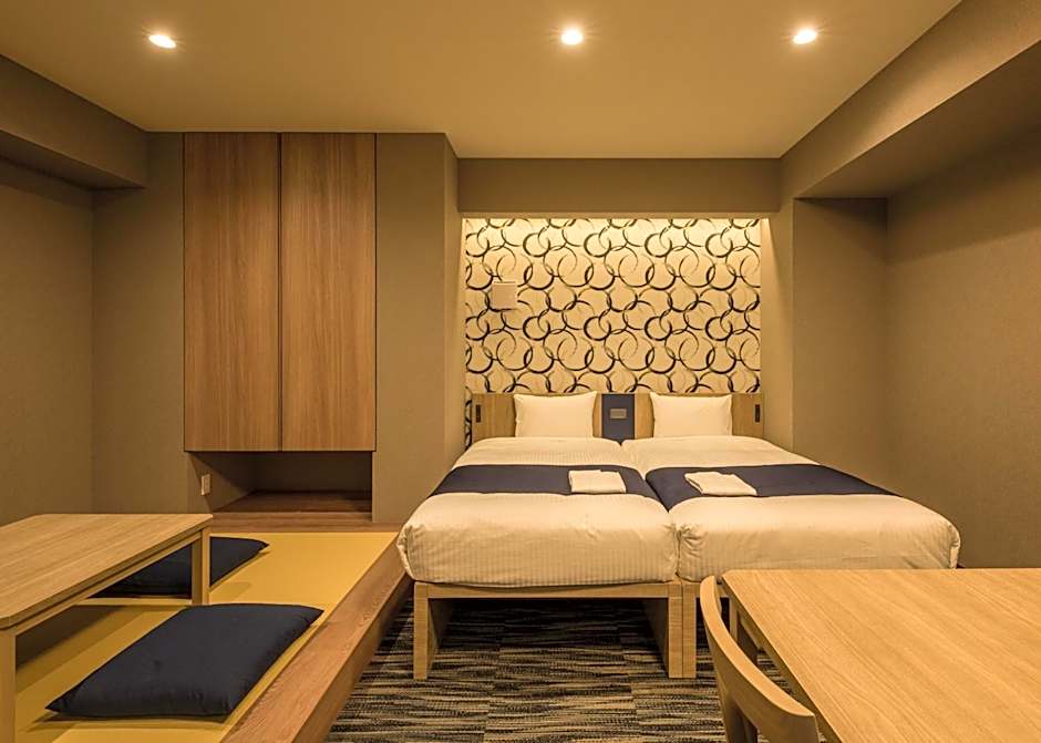 This apartment includes 1 living room, 1 separate bedroom and 1 bathroom with a bath and free toiletries. A kitchen fitted with a refrigerator, kitchenware and a microwave is available for cooking and storing food. This apartment is air-conditioned and has a flat-screen TV, a washing machine, tatami and a tea and coffee maker. The unit has 2 beds and 3 futons.