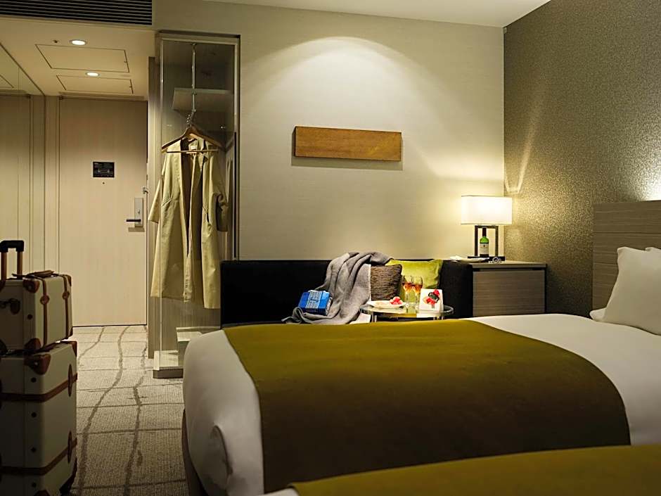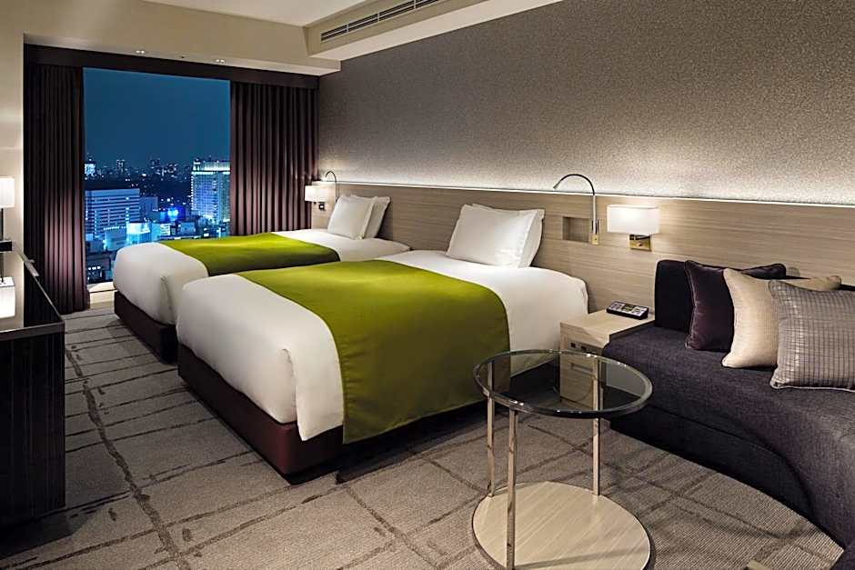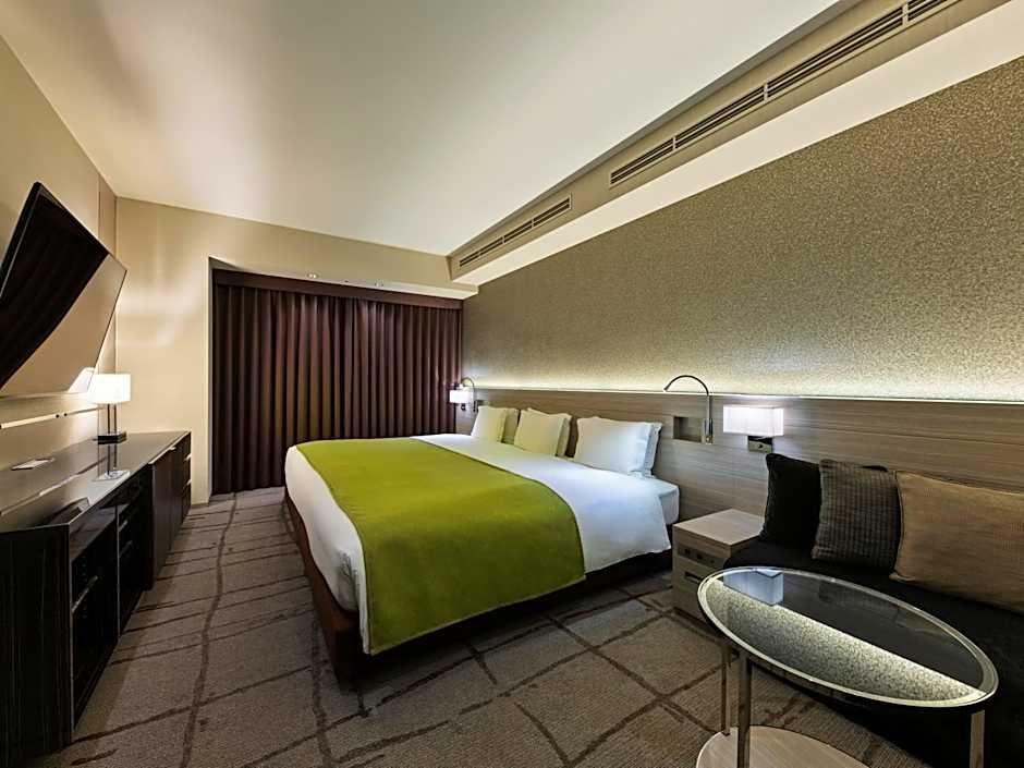 Located above 16th floor, this larger room is fitted with a flat-screen TV on the wall, a fridge and an air purifier/humidifier. A work desk is also provided. Guests can make coffee and tea, enjoy a soak in the private bath. Beautiful night city views can be enjoyed from the bathroom.