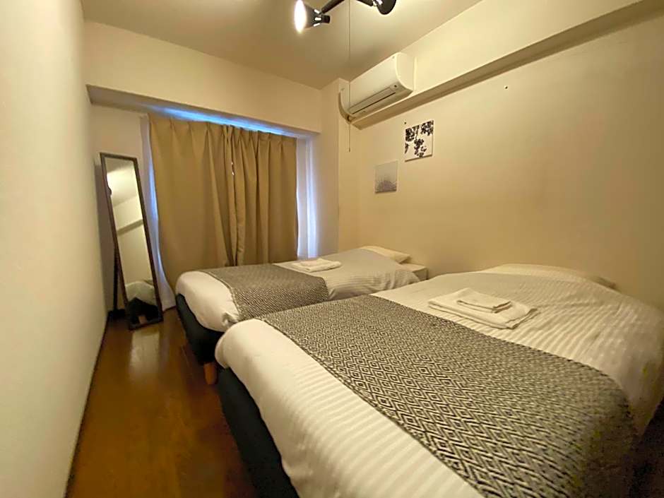 It was spacious for a Tokyo property. Suitably equipped except for an ironing board. Beds were comfortable. Everything worked as it should. I would definitely stay there again. The station is about a 15 minute walk away.