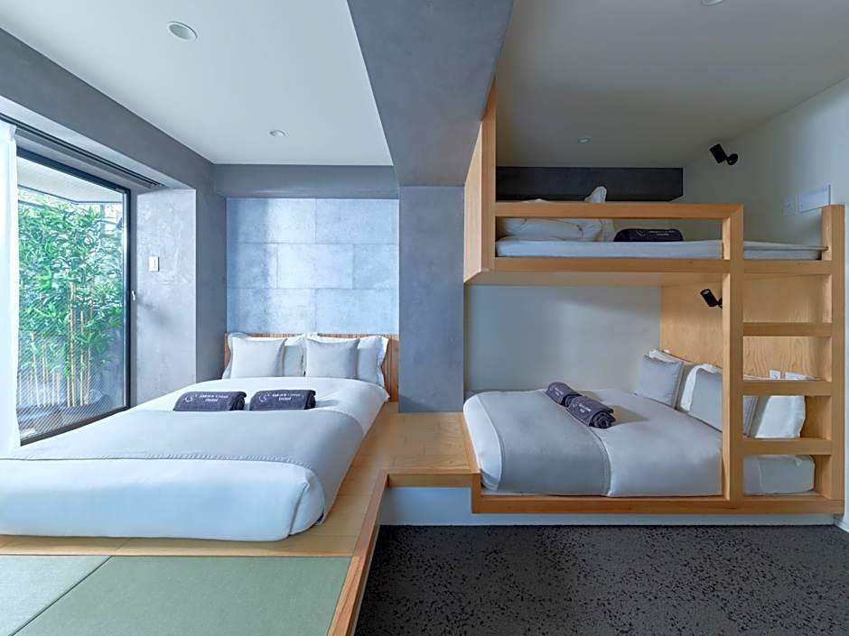 Nice hotel in a great location with very easy access to metro stop, supermarket and restaurants. There is no restaurant or breakfast service on site but plenty of local options. Great coffee bar just across the road. Our family room with two bunk beds and a double mattress on the tatami area was just big enough. There is room for another double futon mattress on the tatami area but given how the room felt with the 4 of us in it you'd be very brave to attempt to cram in more. Maybe with smaller children it could work. Room was spotless and bathroom and shower excellent.