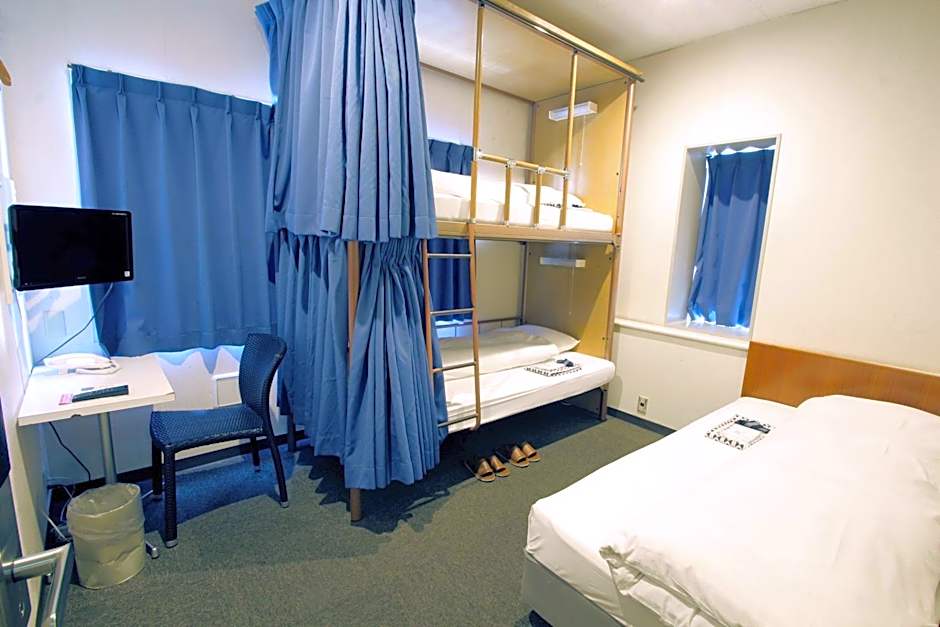 The quadruple room includes a private bathroom, well-fitted with a shower, a bidet, a hairdryer and slippers. The quadruple room's kitchenette, which has kitchenware and a microwave, is available for cooking and storing food. This quadruple room is air-conditioned and features a sofa, yukata and a quiet street view. The unit offers 5 beds. This room has no access to an elevator.
