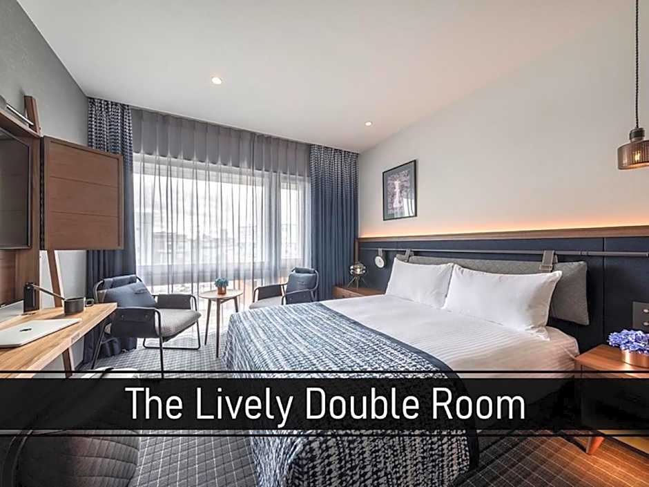 Lively Theater Double Room (1 Double Bed) is 215 square feet and includes a double bed 131-150 width plus desk, hairdryer, safe, and slippers.