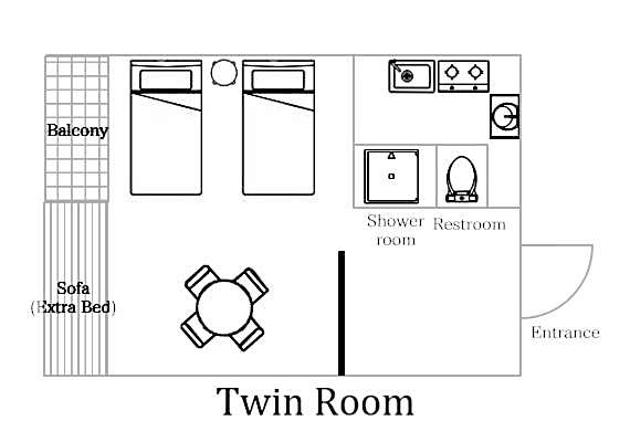 Standardzimmer, 2 Einzelbetten, Kochnische