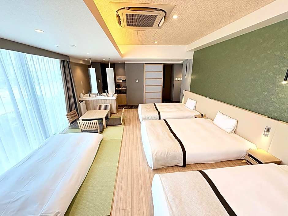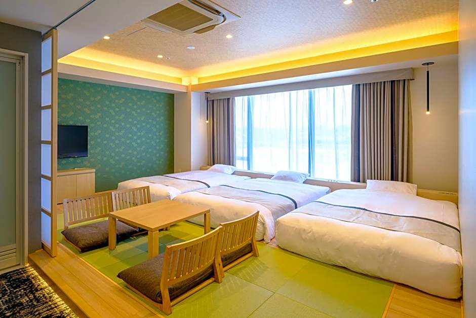 The spacious triple room features air conditioning, tatami, as well as a private bathroom boasting a bath and a bidet. The triple room provides a coffee machine, a wardrobe, a safe deposit box, yukata and a flat-screen TV. The unit has 3 beds.