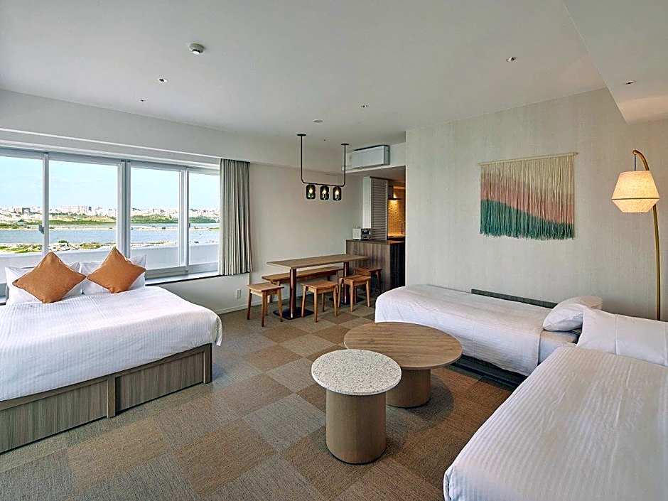 Very new and chic with spacious rooms. The roof top hot infinity pool and lounge access is a bonus. You can enjoy free self serve drinks till 9:30pm while enjoying the beautiful view of Senagajima. Breakfast selection of 3 different choices for takeout to eat in your rooms, or at the lounge or at the cafe area. Free parking right outside the hotel. Foot access to Umikaji terrace with a wide range of restaurants and cafes to choose from. Staff were friendly and helpful.