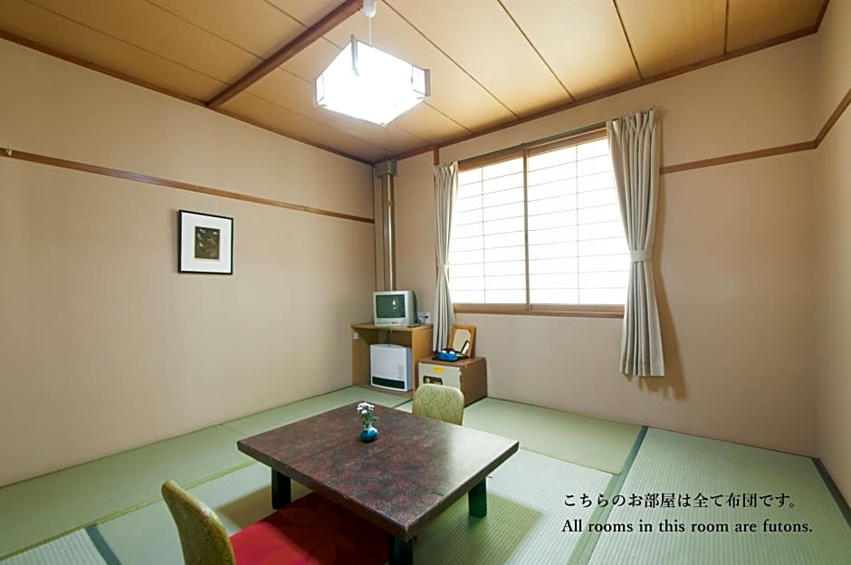 The twin room provides tatami, a safe deposit box, as well as a shared bathroom featuring slippers. This twin room features yukata, heating and a TV. The unit offers 2 futons.