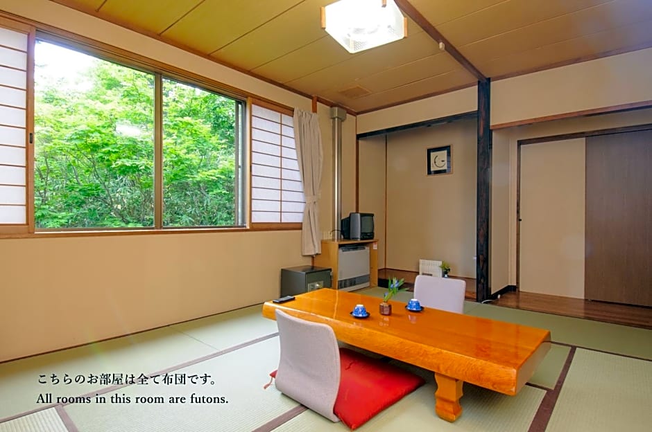 The twin room provides tatami, a safe deposit box, as well as a shared bathroom featuring slippers. This twin room features yukata, heating and a flat-screen TV. The unit offers 2 futons.