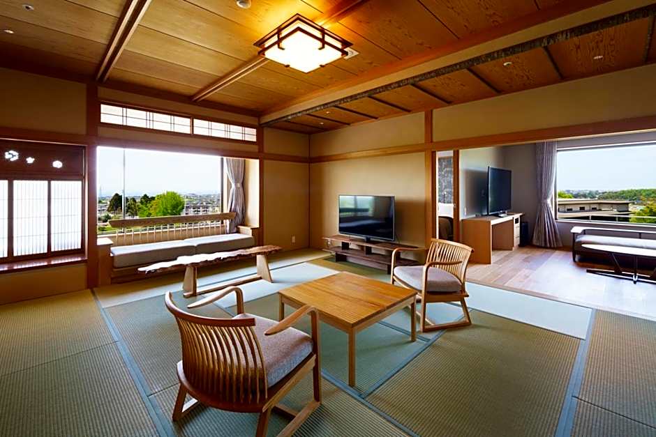 This spacious suite comes with 2 living rooms, 1 separate bedroom and 1 bathroom with a bath and free toiletries. The air-conditioned suite features a flat-screen TV, tatami, a tea and coffee maker, a wardrobe as well as mountain views. The unit has 6 beds and 4 futons.