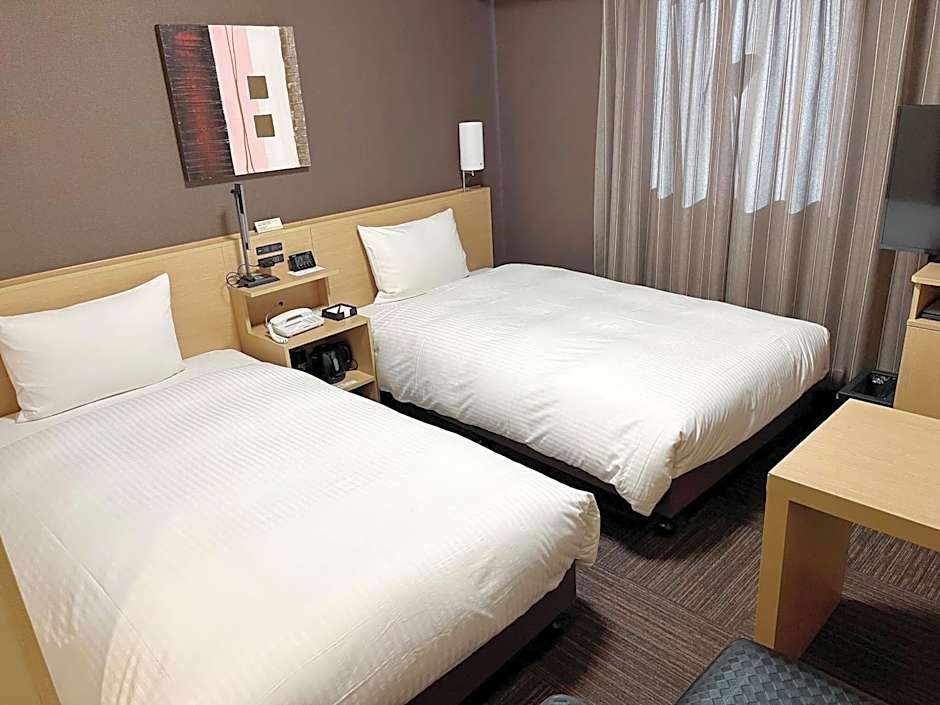 Hotel Route-Inn Toyohashi Ekimae offers a range of room types including the Economy Double Room (non-smoking) which accommodates 2 adults and 1 child, the Standard Single Room (smoking) which accommodates 1 adult and 1 child, and the Standard Twin Room (non-smoking) which accommodates 2 adults and 2 children. The smoking policy varies with some rooms allowing smoking and others not. The bed sizes typically consist of twin beds.