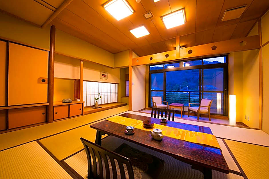 The room was huge, We were able to spread out quite comfortably and had ample space to organize our luggage. The room also had a small balcony that overlooked a river that had cherry blossom trees in bloom along it. Overall it was a very relaxing atmosphere. We had the breakfast included option and I was quite surprised at the portion size served. There were a couple days I couldn't finish it (though I don't usually have breakfast so my appetite might be a little small) but my partner seemed satisfied. Every morning was a different breakfast for us, which we appreciated. It was mainly Japanese style food with some Western touches. This ryokan is deep in the country in a small, quiet area. There are three or four onsens within walking distance, as well as a small hike with a view of the bay in the distance. There is a community center/onsen newly built about a 10 minute walk away with nice facilities and extremely cheap E-Bike rental. We had a lot of fun biking around the full bloom cherry blossom trees and small residential streets. I really enjoyed the onsen water here as well. It almost feels slippery and your skin and hair feel super smooth after bathing.