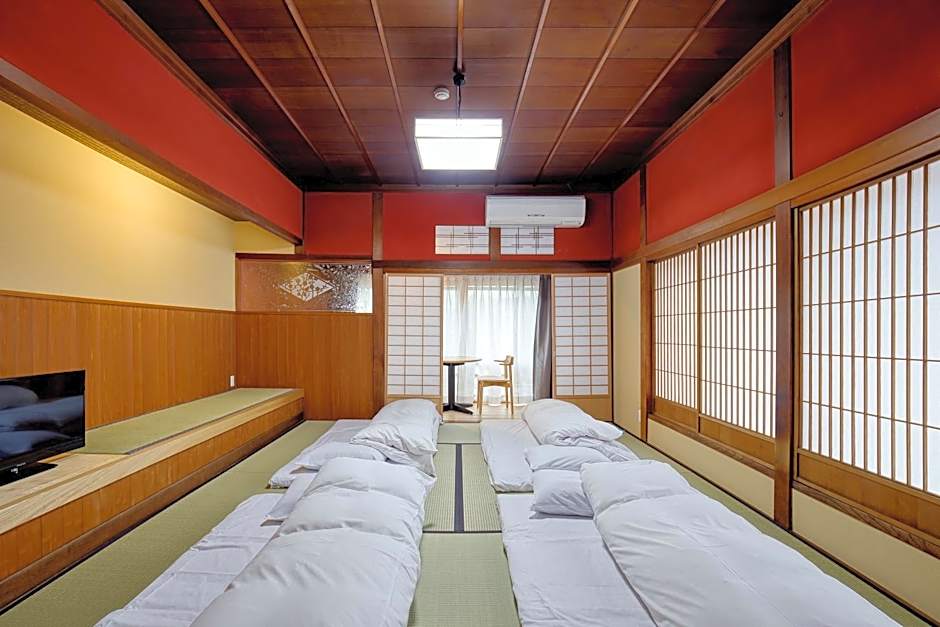 The family room offers air conditioning and tatami, as well as a shared bathroom boasting a hairdryer. This family room has yukata, heating and a flat-screen TV. The unit has 2 futons.