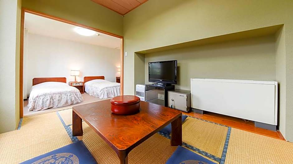 The quadruple room provides air conditioning, tatami, as well as a private bathroom featuring a bath and a shower. The quadruple room features a seating area, a carpeted floor, yukata, heating and a flat-screen TV. The unit offers 2 beds and 2 futons.
