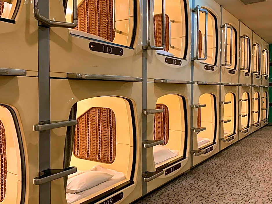 This sleeping compartment accommodates 1 person each. Standing side-by-side in 2 layers at a common area, they are fitted with pay-per-view TV, radio and an alarm clock. Bathrooms and toilets are shared, and nightwear and free toiletries are provided. Only men can stay at this property, and men with a tattoo of any kind cannot stay.
