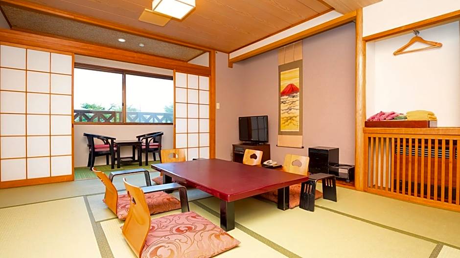 A great location to view Fuji, the staff at the hotel were really friendly and helpful. The traditional Japanese room was suitable for our family for a night, and we enjoyed the clean and quiet onsen. We hired bikes locally to cycle around the lake, then hired two scooters from the hotel early the next morning to see the sunrise. Highly recommend!