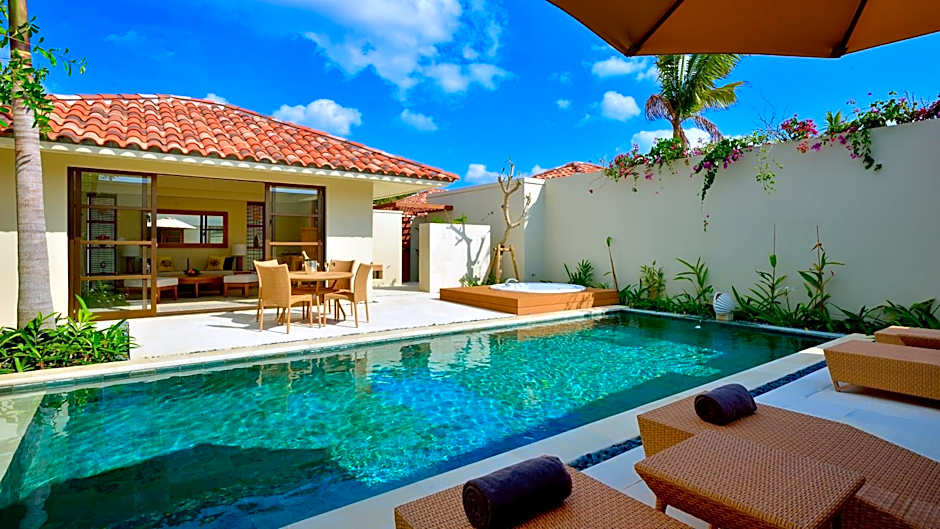 This villa features a separate bedroom, living room and a private pool. An extra bed will be provided if booked for 3 guests.