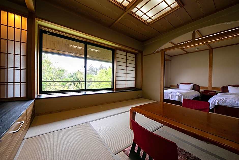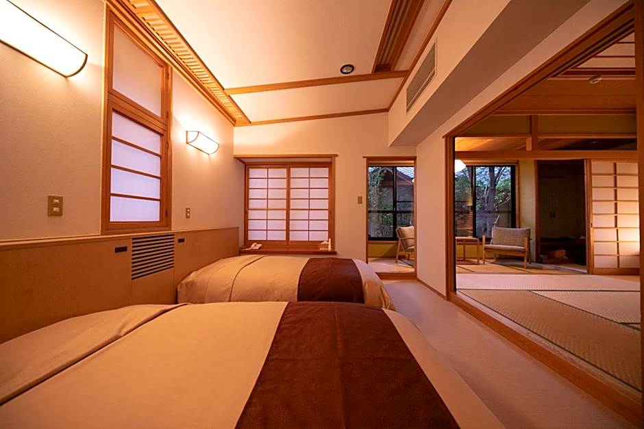 Guests will have a special experience as the family room offers a private open-air bath. Providing free toiletries, this family room includes a private bathroom with a shower, a hairdryer and slippers. The air-conditioned family room provides a flat-screen TV with satellite channels, tatami, a private entrance, a dressing room as well as mountain views. The unit offers 2 beds and 3 futons.
