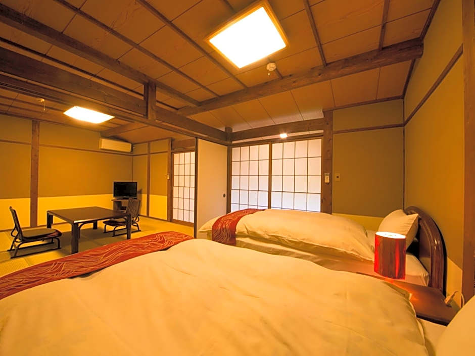 Boasting unique architecture. Two separate houses are used as 1 unit. Fitted with a historic charm and the open-air bath, this suite is housed in an individual building, and features tatami (woven-straw) flooring and futon bedding. Facilities like a flat-screen TV and a personal safe are provided. Guests can unwind in the room with a yukata robe on, sipping a cup of green tea. Children 12 years and under cannot stay in this room.