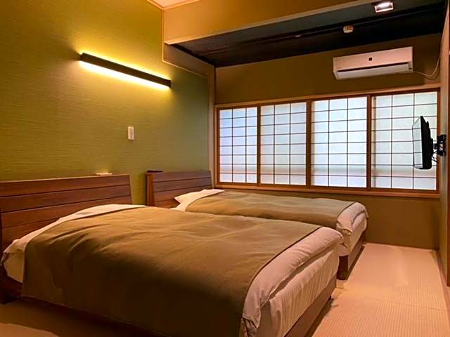 Guests will have a special experience as the family room offers a private open-air bath. Providing free toiletries, this family room includes a private bathroom with a bath, a shower and a bidet. The family room provides air conditioning, tatami, a safe deposit box, an electric kettle, as well as a flat-screen TV. The unit offers 2 beds and 2 futons.