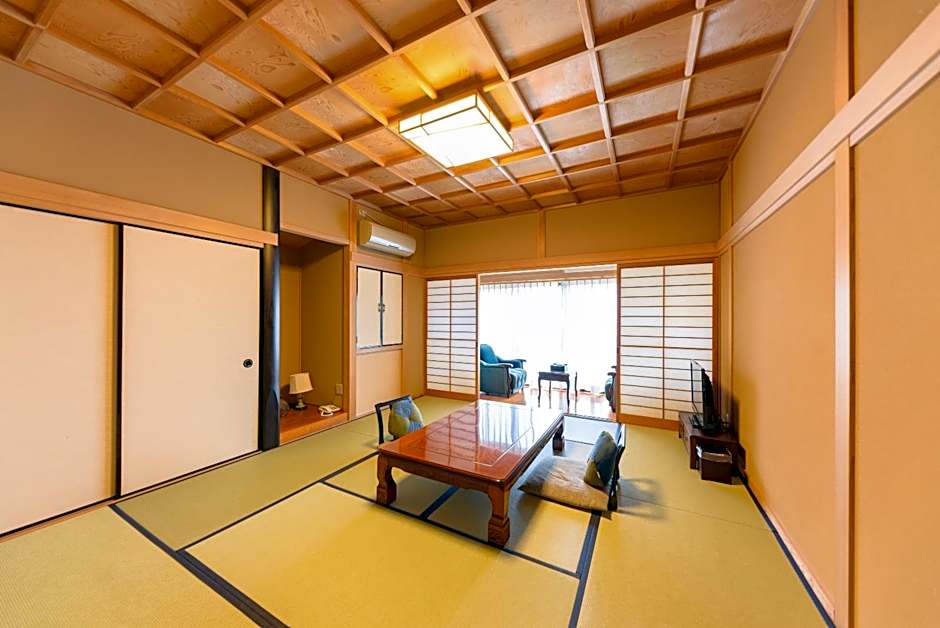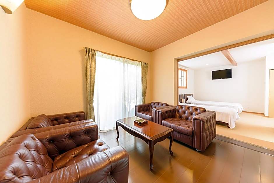 The quadruple room features air conditioning, tatami, as well as a private bathroom boasting a bath or a shower and a bidet. Guests can make meals in the fully equipped kitchenette that has a refrigerator, kitchenware and a microwave. The quadruple room provides a tea and coffee maker, a wardrobe, a safe deposit box, a flat-screen TV, as well as mountain views. The unit has 4 futons.