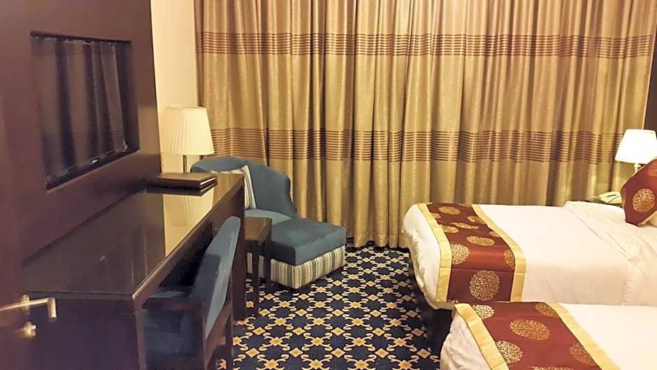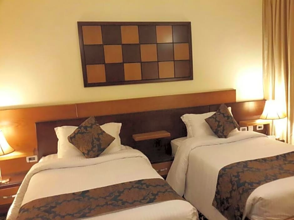 The Al Thuraya Hotel offers different room types including standard rooms, suites, and deluxe rooms. Occupancy ranges from single to quadruple occupancy. Rooms vary in bed sizes from twin to king beds, with some rooms designated as smoking rooms.