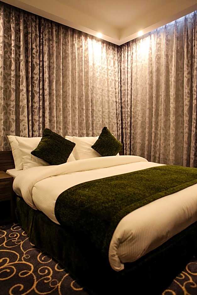 At Almond Hotel Apartments, one type of room available is the One-Bedroom Apartment, which has a size of 592 sqft. It is suitable for single occupancy and does not allow smoking. The room features a Queen size bed and two Twin beds, accommodating two adults and one child.