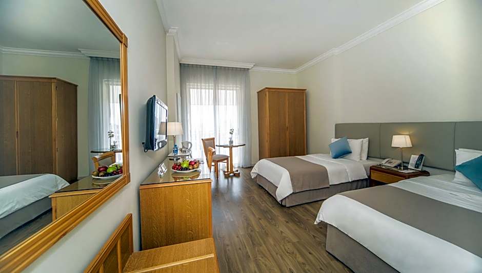 Executive Room with View (2 Twin Beds) is 248 square feet and includes 2 single beds 80-130 width plus balcony, desk, cable tv, hairdryer, tea and coffee making facilities , safe, and slippers and is Wheelchair-accessible.