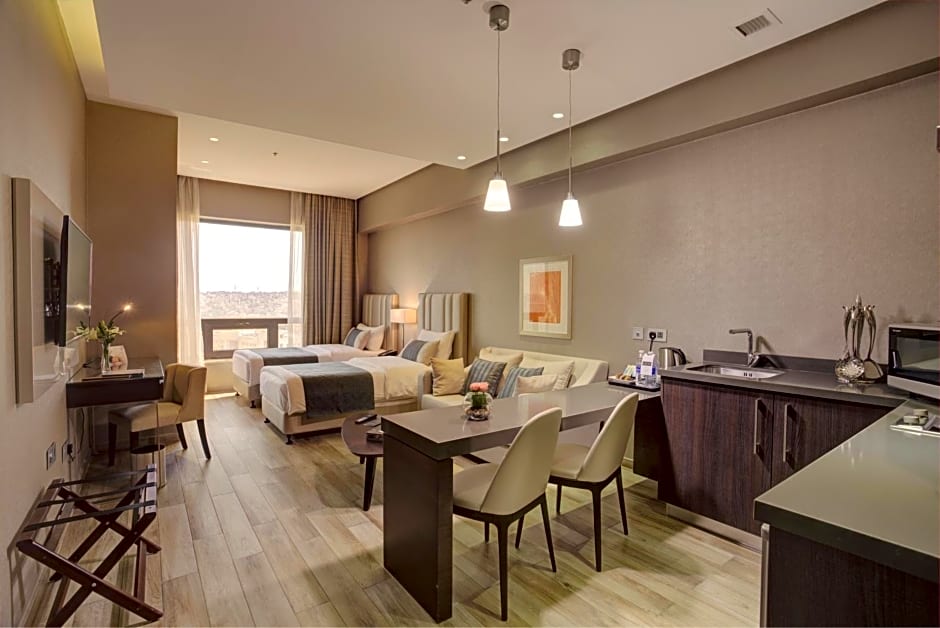 Situated in the 2nd Circle area of Amman, the property offers upper floors accessible by elevator and nearby access to city conveniences. With private on-site parking and free WiFi, it presents a convenient base for exploring Jordan’s capital while enjoying a stylish, landmark-view stay.