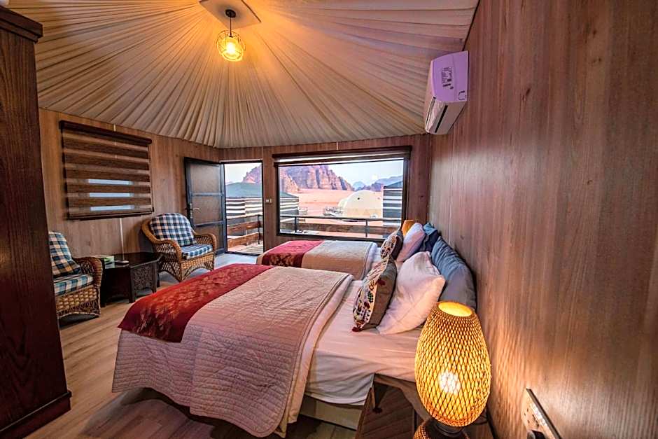 My friend and I had an amazing experience staying at this hotel in Wadi Rum. We arrived by bus, and even before reaching the village, a hotel representative met us and gave us a ride—such a thoughtful welcome! At the hotel, the staff greeted us warmly and upgraded our room to a more comfortable one. They offered us tea, coffee, and juice on arrival, which was a lovely gesture. They also helped us book a 4-hour jeep tour in the desert and arranged a taxi for us to Aqaba—all very quickly and efficiently. The room was clean, spacious, and very comfortable. They even let us check in a bit earlier than the official time, without any issues. The restaurant deserves special mention: everything we tried was delicious. The chef was extremely friendly and even treated us to drinks, even though beverages weren’t included with dinner. What stood out the most was how kind and attentive every single staff member was. They would stop to chat and make sure we were enjoying our stay. Overall, it was a fantastic experience from start to finish. Highly recommend this place to anyone visiting Wadi Rum!
