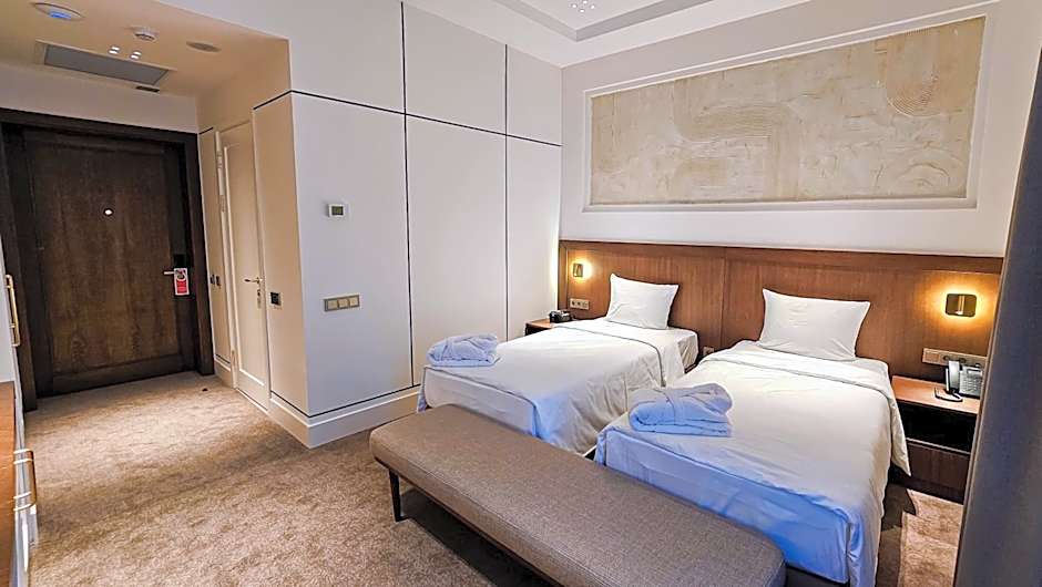 Providing free toiletries and bathrobes, this twin room includes a private bathroom with a bath, a bidet and a hairdryer. The spacious twin room provides soundproof walls, a mini-bar, a wardrobe, a flat-screen TV with cable channels, as well as city views. The unit offers 2 beds.