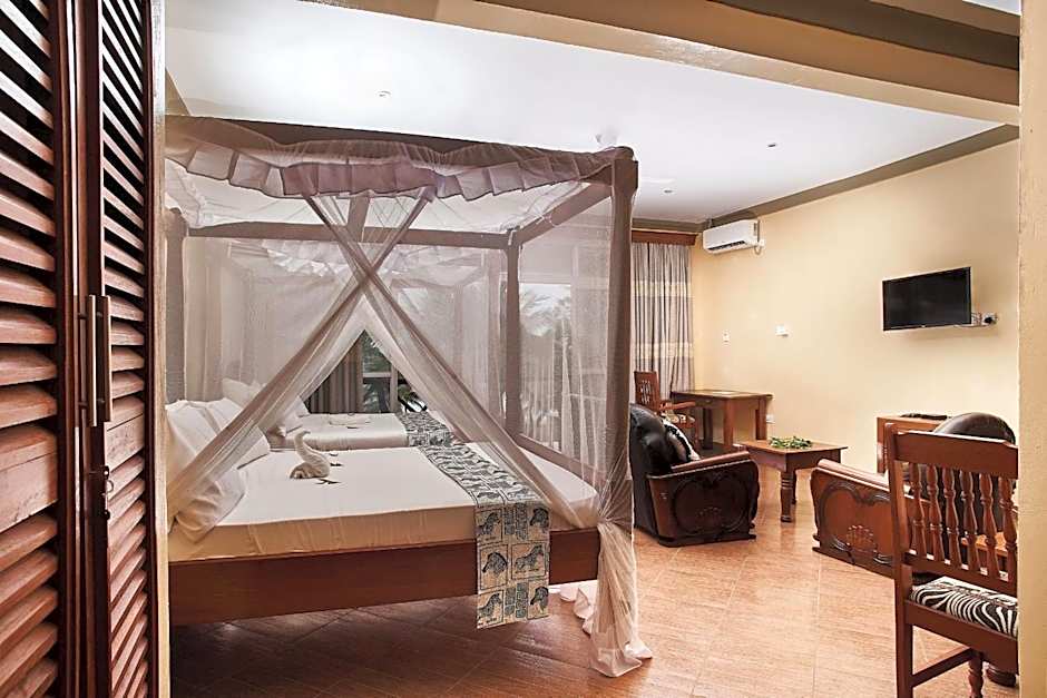 With a perfect location and nearly perfect reviews from delighted visitors, promises a memorable escape. The beautifully furnished rooms feature modern amenities like air conditioning, soundproofing, and private balconies that invite you to enjoy garden or sea views. Whether you’re in town for leisure or a family getaway, this resort combines comfort, fun, and convenience for an unforgettable Kenyan coastal experience.