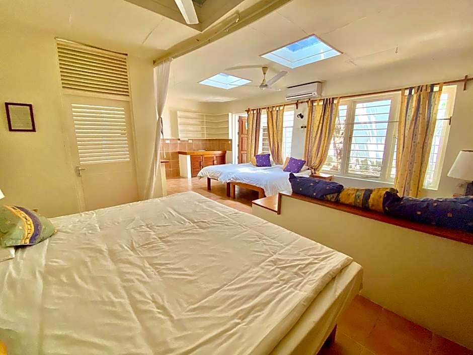 The quadruple room provides air conditioning, a seating area, as well as a private bathroom featuring a shower and a hairdryer. Among the room amenities are a wardrobe, a safe deposit box and an electric kettle as well as garden views. The unit offers 3 beds.