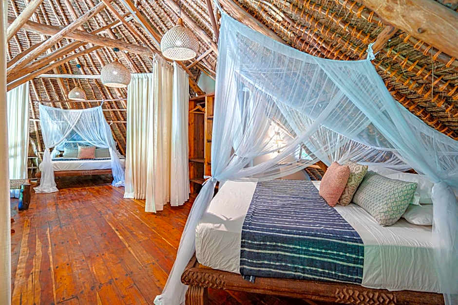 These suites offer a private veranda with ocean view. They are equipped with a an AC, fan, and mosquito nets. The bathroom has a stone shower and double washbasin. All rooms have a king size bed. The ground floor suites can be equipped with an extra bed for one person. The top floor suites have a third bed, which is 80x188cm, that doubles as a bed and/or a daybed/sofa.