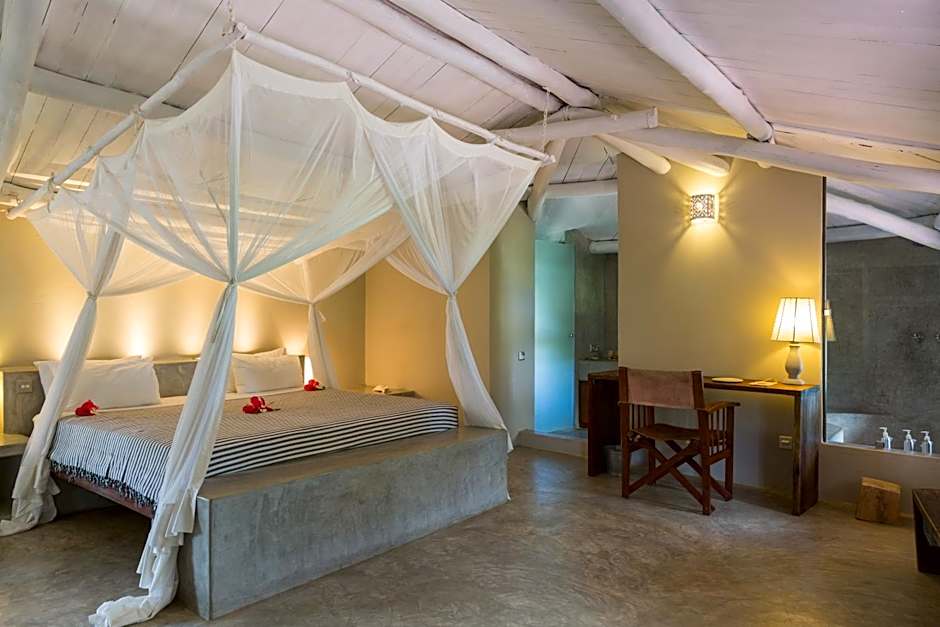 Offering garden views, this suite features air conditioning, a mini-bar, an indoor and outdoor seating area, satellite TV and a bathroom with shower. The beds are draped with a mosquito net.