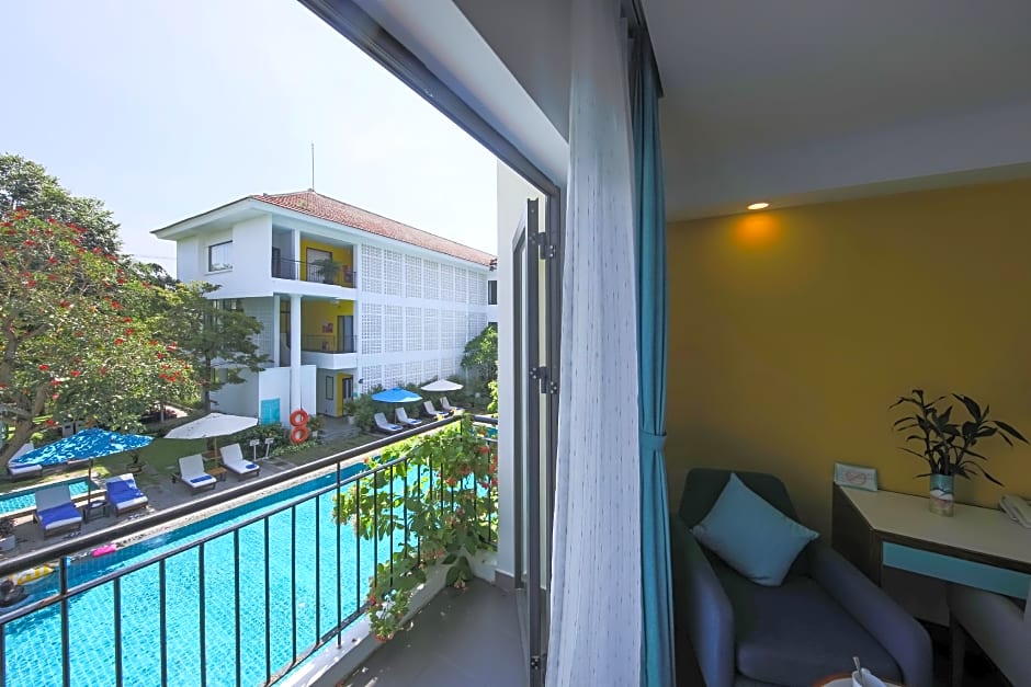 디럭스룸, 더블 베드, 발코니, 수영장 전망