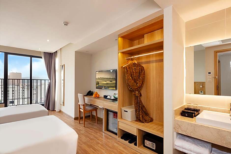 아침 식사는 현장에서 제공되어 시내 중심가로의 산책이나 해변 나들이 등 어떤 일정이 있어도 부담 없이 하루를 시작할 수 있습니다. 옥상 야외 수영장은 성인 전용으로 도시 전경을 감상할 수 있는 세련된 휴식 공간을 제공합니다. 테라스에는 해변용 의자와 라운저가 늘어서 있어, 127/5 Nguyen Thien Thuat Street에 위치한 도심에서 - 거리에 있는 위치 근처에서의 하루 탐방 후 햇빛을 즐기며 휴식을 취하기 좋습니다.
