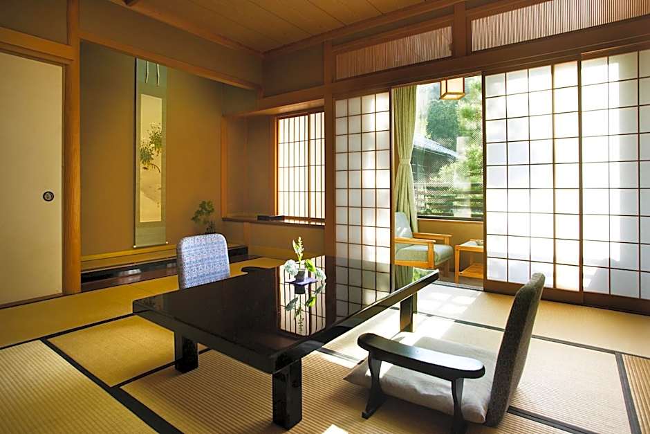 여러 객실 타입이 있어 다양한 여행자에게 선택의 폭을 제공합니다. 전통 일본식(다다미)과 일본식 디럭스 옵션은 아늑한 숙박을 제공하며, 일부 디럭스 객실은 전용 욕실과 정원 또는 산 전망을 갖추고 있습니다. 그 외에 메종네트(메종ette), 듀플렉스, 스위트 구성 등도 있어 커플이나 소규모 그룹에게 적합한 선택지가 마련되어 있습니다.