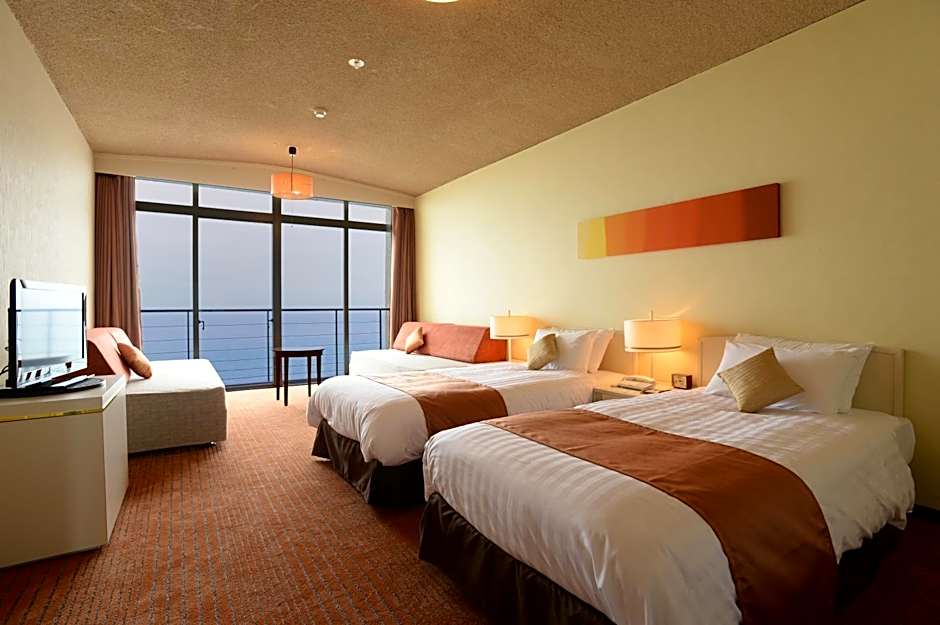 어메니티로는 레스토랑, 야외 수영장(무료), 전용 주차장(무료), 무료 Wi-Fi 및 무료 셔틀 서비스가 있습니다. 또한 해변 출입, 에어컨, 선데크, 온천(무료), 테라스, 엘리베이터, 24시간 프런트, 금연 객실, 발코니, 비데, 방음 객실, 욕조 및 무료 세면도구도 제공됩니다. 어린이 식사는 무료이며 상층은 엘리베이터로 이용할 수 있습니다.