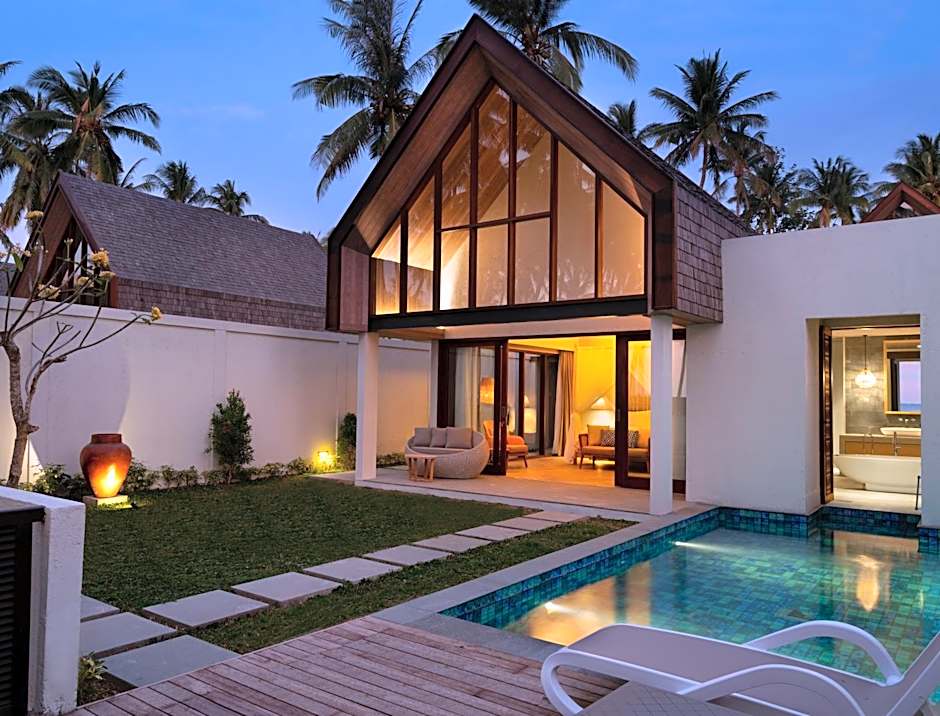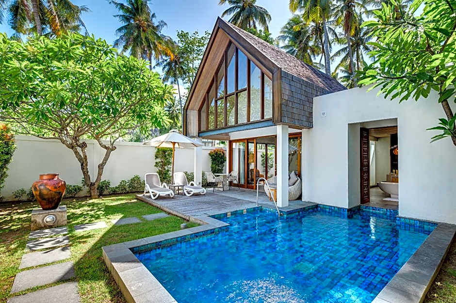 숙박 선택지는 다양한 빌라와 듀플렉스 타입으로 구성됩니다. 주요 객실로는 전용 풀을 갖춘 디럭스 빌라(Deluxe Villa with Private Pool, 1991 sqft) — 성인 2명과 아동 1명 수용, 킹사이즈 침대 — 해변가 빌라(Villa, Beachfront, 205 sqft), 전용 풀을 갖춘 힐사이드 빌라(Villa, Hillside with Private Pool, 2207 sqft) 등이 있습니다. Villa, King과 같은 대형 구성은 최대 성인 20명과 아동 13명까지 수용 가능하며, Run Of House 또는 Duplex Villa 옵션은 가족 및 단체에 유연한 레이아웃을 제공합니다.