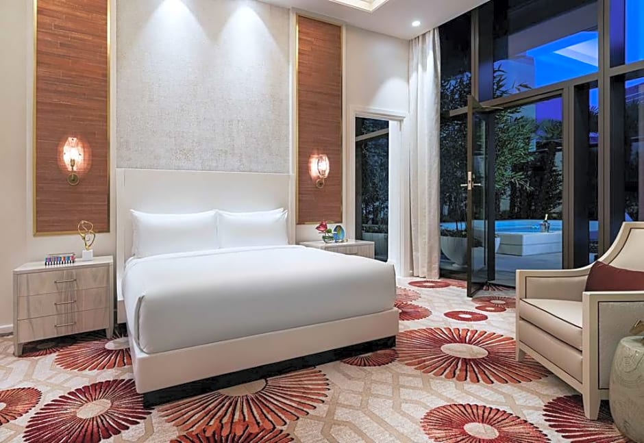 현장 하이라이트로는 카지노, 스파/웰니스 패키지, 야외 수영장이 있으며, 레스토랑, 바, 룸서비스도 갖추고 있습니다. 무료 Wi-Fi, 피트니스 센터(무료), 24시간 프런트 데스크가 편의를 더해주며, 금연 객실과 휠체어 접근 가능 시설도 마련되어 있습니다. 현장 주차는 추가 요금으로 이용 가능하며, 스트리밍 서비스(예: Netflix), 에어컨, 무료 세면도구, 전망, 욕조, 테라스, 상층으로 연결되는 엘리베이터 등의 추가 편의시설이 제공됩니다.