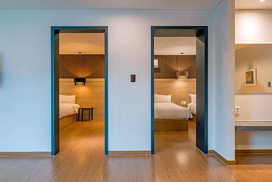 객실 옵션은 다양한 전망과 구성으로 마련되어 있습니다. 많은 객실에 에어컨, 방음 시설, 금연 객실 배치가 되어 있으며 무료 세면도구가 제공됩니다. 산 전망 또는 랜드마크 전망 옵션을 선택할 수 있고, 디럭스룸과 일부 스위트에서는 바다 전망 선택이 가능합니다. 주목할 만한 객실로는 세련된 공간을 제공하는 코너 스위트(바다 전망)와 로열 스위트(바다 전망)가 있으며, 프리미어 스위트(산 전망)는 더블베드 2개를 갖추고 있습니다. 더 큰 그룹을 위해서는 최대 성인 8명과 어린이 5명까지 수용 가능한 대형 프리미어 스위트도 있습니다.