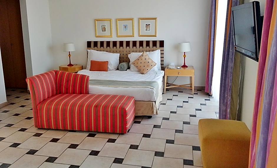 Imagine waking up in a comfy, air-conditioned room after a restful night, with free Wi-Fi to plan your day of fun. Lounge on a beach chair under a sun umbrella, take a dip in the outdoor pool, or let the kids loose in the complimentary kids’ club—because family fun is always a priority here. When hunger strikes, you can indulge at the onsite restaurant or order room service, while adults might enjoy a game on the tennis court or workouts in the fitness center.
