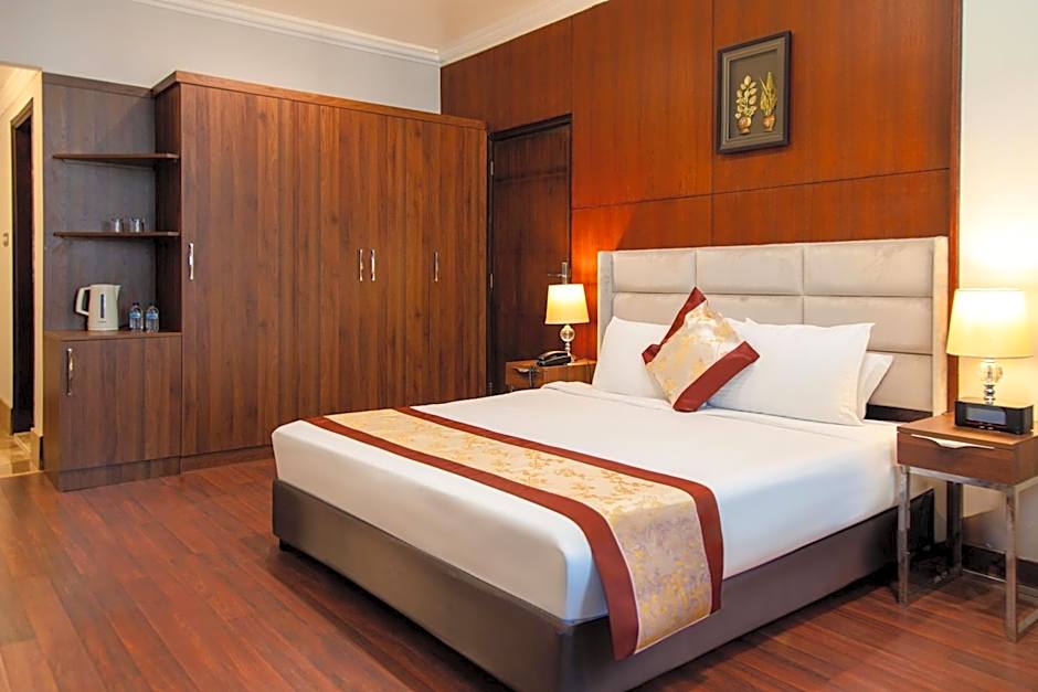 A spacious 80 sqm air conditioned Suite which offers a king bed and large flat screen TV in each room. Large living room with flat screen TV & Sofa and a kitchenette, Second bedroom also offer a large work desk and a mini-bar. Ironing facilities and a Kettle with free tea Set up is also in the room. Each bathroom includes a shower and free toiletries