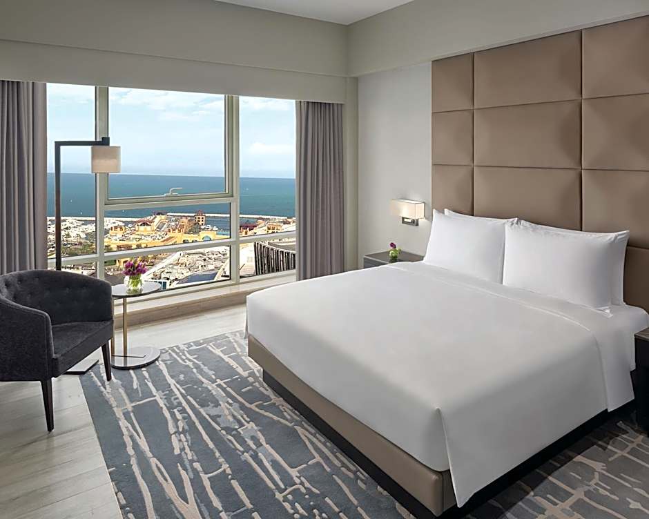 Offering views of the city and the Arabian Sea, this 39 sqm room is located on a high floor. It features a smart work area and a modern marble bathroom with a hairdryer, bath toiletries, and robes and slippers. A 65-inch smart flat-screen HDTV, coffeemaker, and small refrigerator are provided, as are ironing facilities and heating and air conditioning.