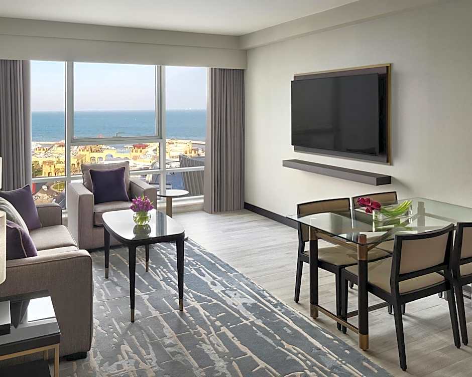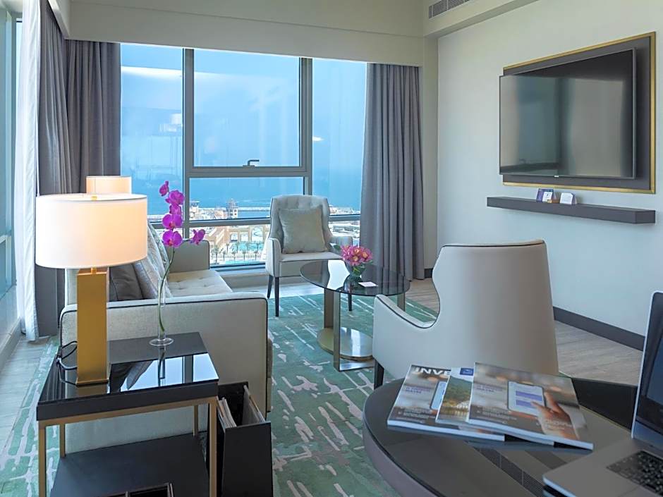 This 39 sqm room overlooks the city or the Arabian Sea and features a smart work area and a marble bathroom with a hairdryer, bath toiletries, and robes and slippers. A 65-inch smart flat-screen HDTV, coffeemaker, and small refrigerator are provided, as are ironing facilities and heating and air conditioning.