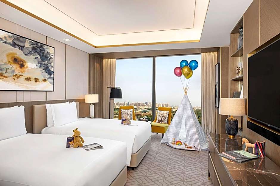Antes de se despedir do Waldorf Astoria Kuwait, não perca a chance de apreciar as deslumbrantes vistas da cidade que certamente deixarão uma impressão. Relaxe na varanda cênica ou na janela do seu quarto, onde as luzes cintilantes da Cidade do Kuwait adicionarão um toque mágico à sua estadia. Seja um tempo de união familiar ou uma escapada romântica sob as estrelas, você está destinado a criar memórias calorosas neste refúgio luxuoso. Então, arrume suas malas e prepare-se para uma experiência repleta de diversão que combina elegância, conforto e um sabor inesquecível do Kuwait!