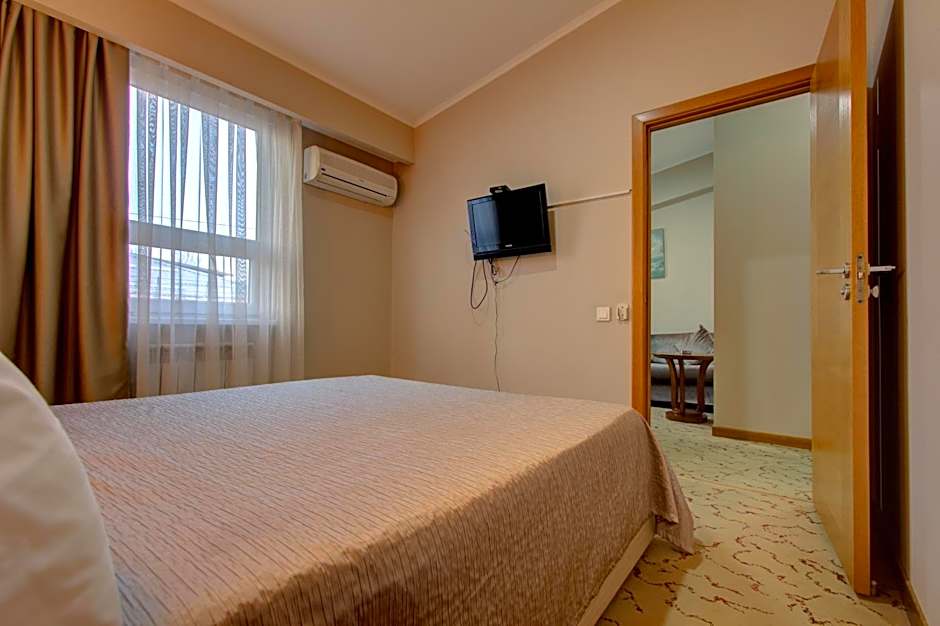 Hotel is located at best location. Atm, restaurants, pharmacy, grocery, barber shops, money exchange everything is on walking distance. Located in the center of the city and very convenient to go anywhere from there. Taxi is 24/7 available through Yandex app which is too cheap. Hotel staff was extremely helpful and exceeded our expectations by providing the big room as requested & also got us connected to tourism company for further travels. Breakfast was also very good. Wifi is very good and available at any corner of hotel. They accept card payments and arrange Airport pick/drop.