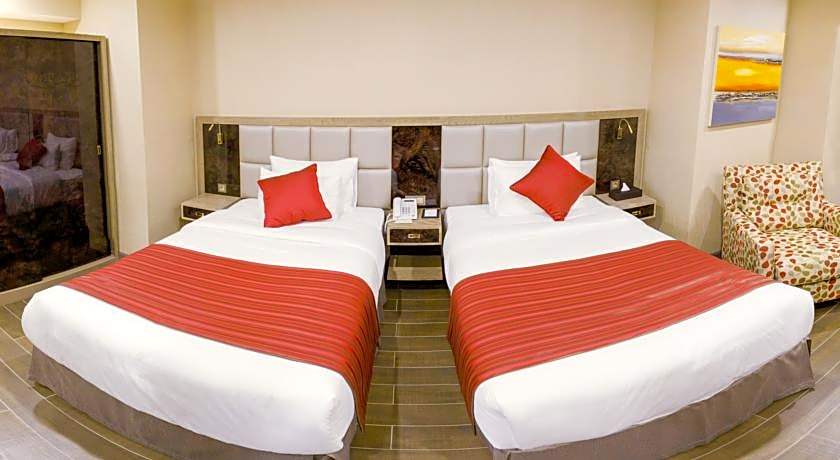 The hotel offers a variety of rooms including Superior King, Deluxe King, King, Double, Junior King Suite, and Superior Queen Room. All rooms are non-smoking and accommodate 2 adults and 2 children. Bed sizes range from Queen size to Twin beds, and the room sizes vary from 291 sqft to 646 sqft.