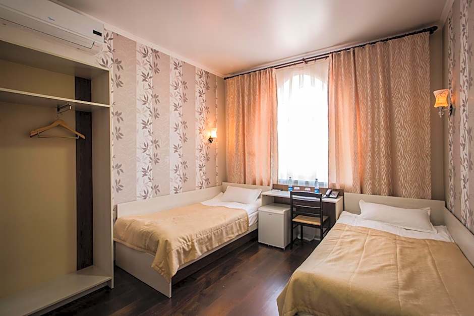 This twin room features air conditioning, a flat-screen TV and fridge.