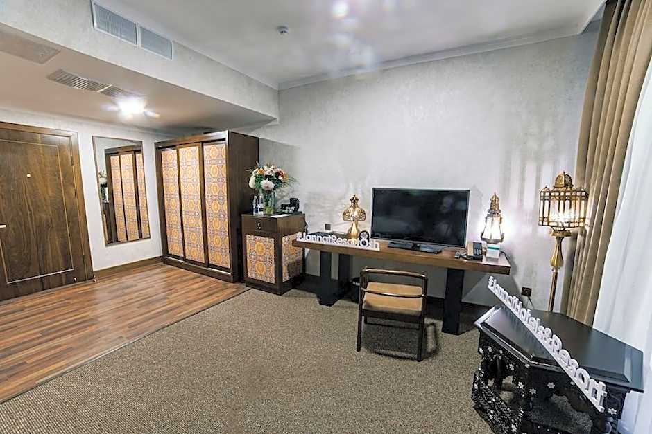 Jannat Resort Osh is a 5-star hotel in Osh, Kyrgyzstan. Located about 2,4mi from the city center, it offers a setting that blends mountain and river views with garden and landmark vistas. Address: 5/1 Kokum Bii Str.