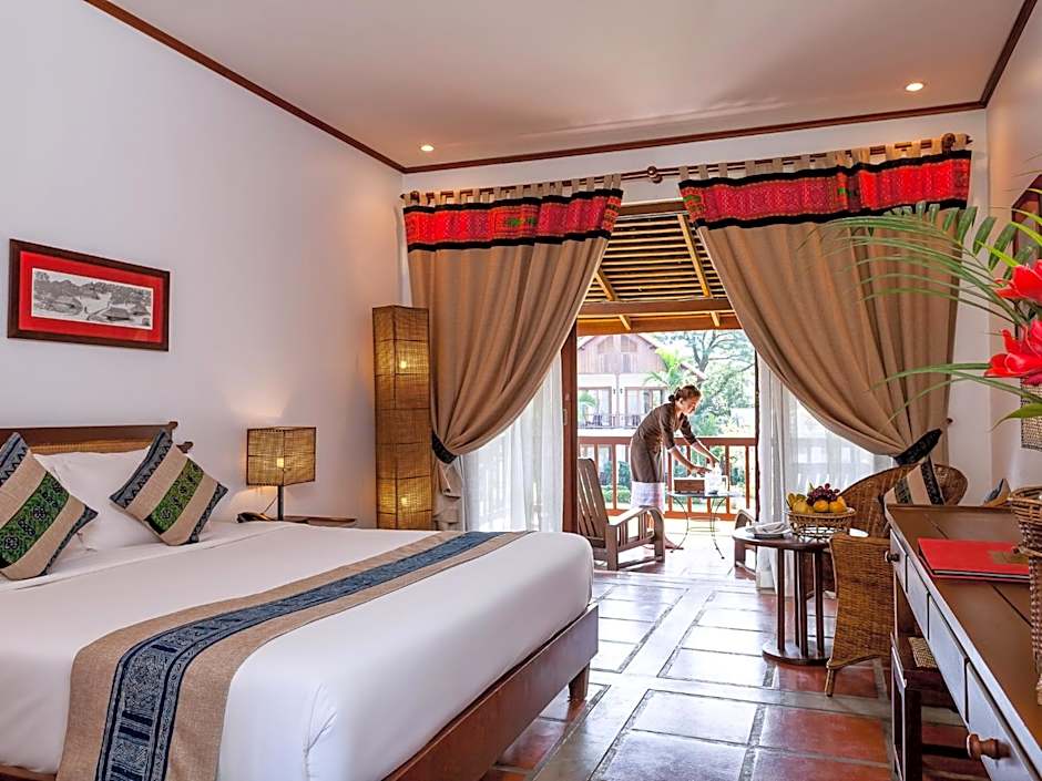 Spacious suite features a wrap-around private balcony with views of the pool and the mountain one side, and the Nam Song River on the other. It has a flat-screen cable TV, a mini-bar and an electric kettle. An private bathroom comes with a bathtub, free toiletries and a hairdryer. A bathrobe and slippers are provided.